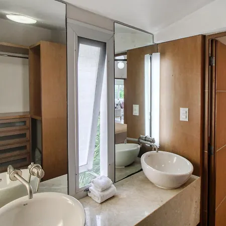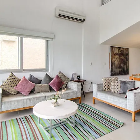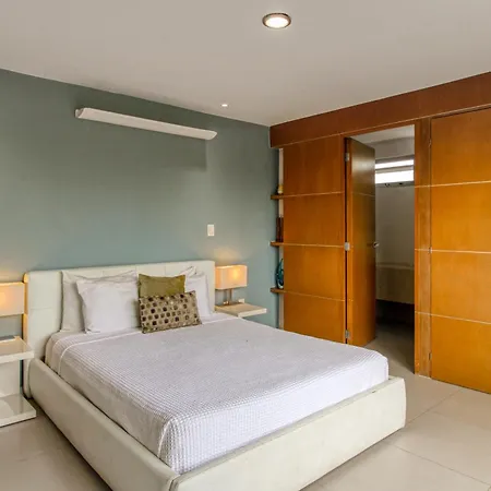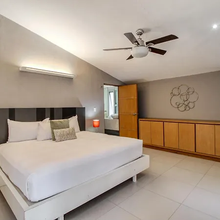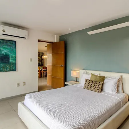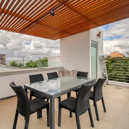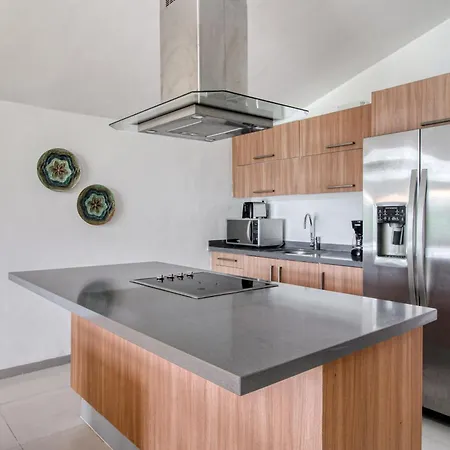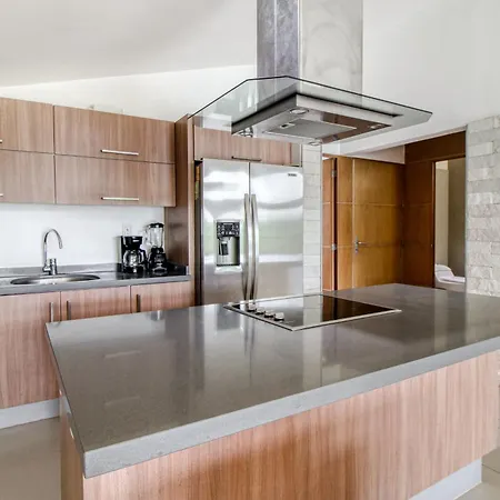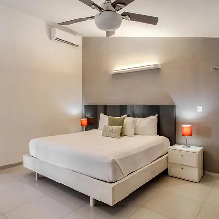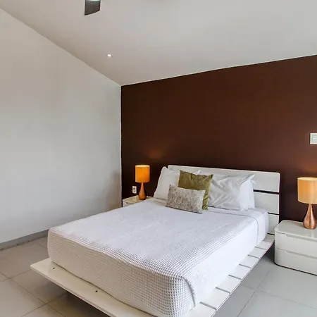 A fully equipped kitchen with a fridge, an oven, and kitchenware is provided in this accommodation, along with coffee and tea making facilities. The apartment is about 25 km from Isla Mujeres airport.